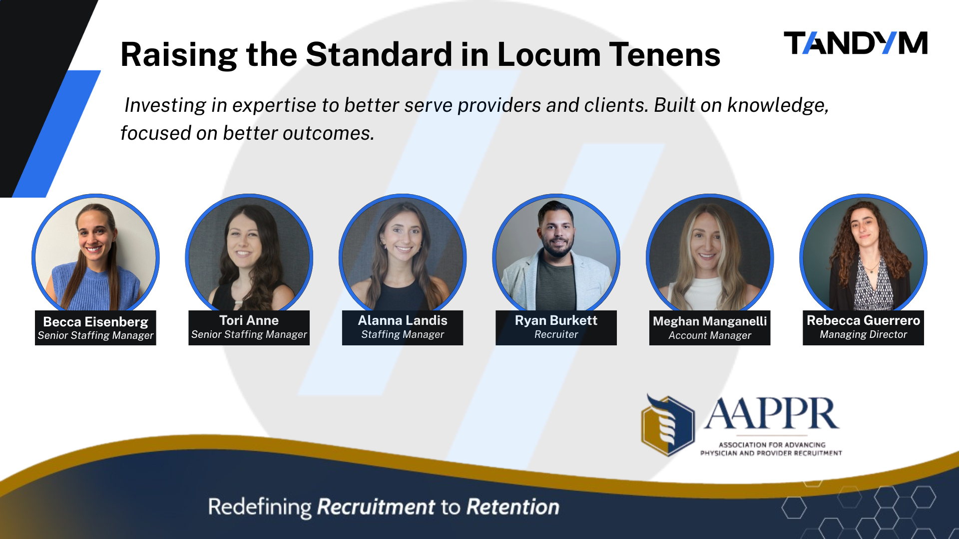 Tandym Group is proud to share that members of our Locum Tenens team have completed the Locum Tenens Management Certificate through AAPPR (Association for Advancing Physician and Provider Recruitment).
